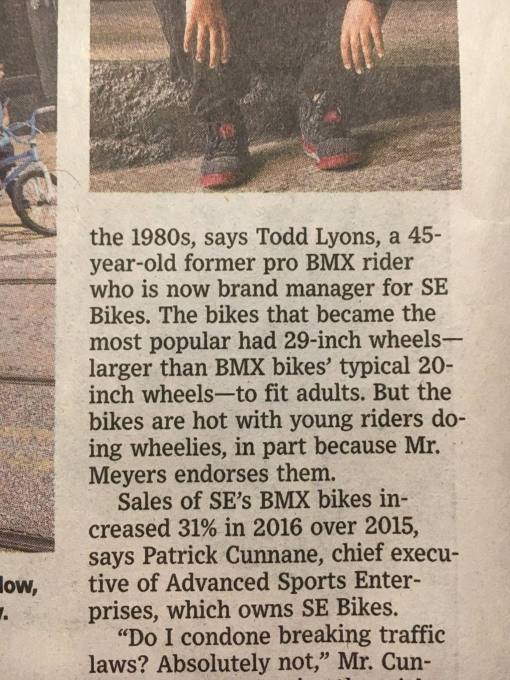 Wall Street Journal writes piece on wheelies